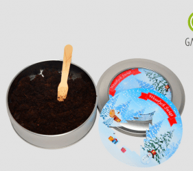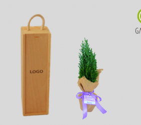 Chcesz się dowiedzieć, co jest w środku? Zestaw składa się z niewielkiego cyprysika, który może być namiastką świątecznego drzewka. Jego ogromną zaletą jest to, że nie jest wymagającą rośliną. Może stać w biurze, domu lub na zewnątrz – w ogródku albo na tarasie. Aby podkreślić ekologiczny charakter upominku, drzewko jest owinięte naturalną jutą i przewiązane śliczną wstążką. Ponadto w świątecznym pudełku zapakowana jest herbatka, której aromat rozgrzeje nawet największego zmarzlucha oraz miód w eleganckim słoiczku.